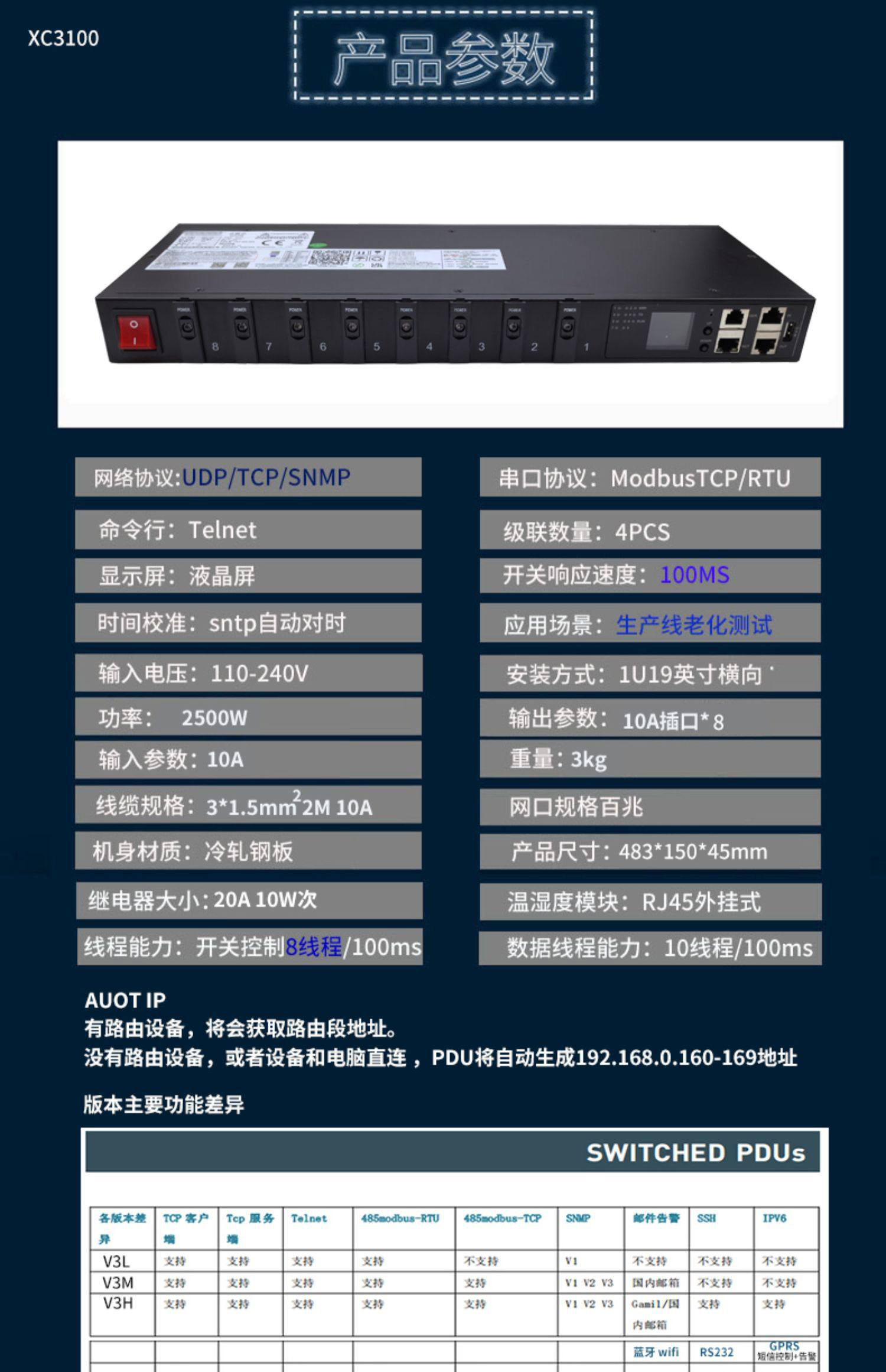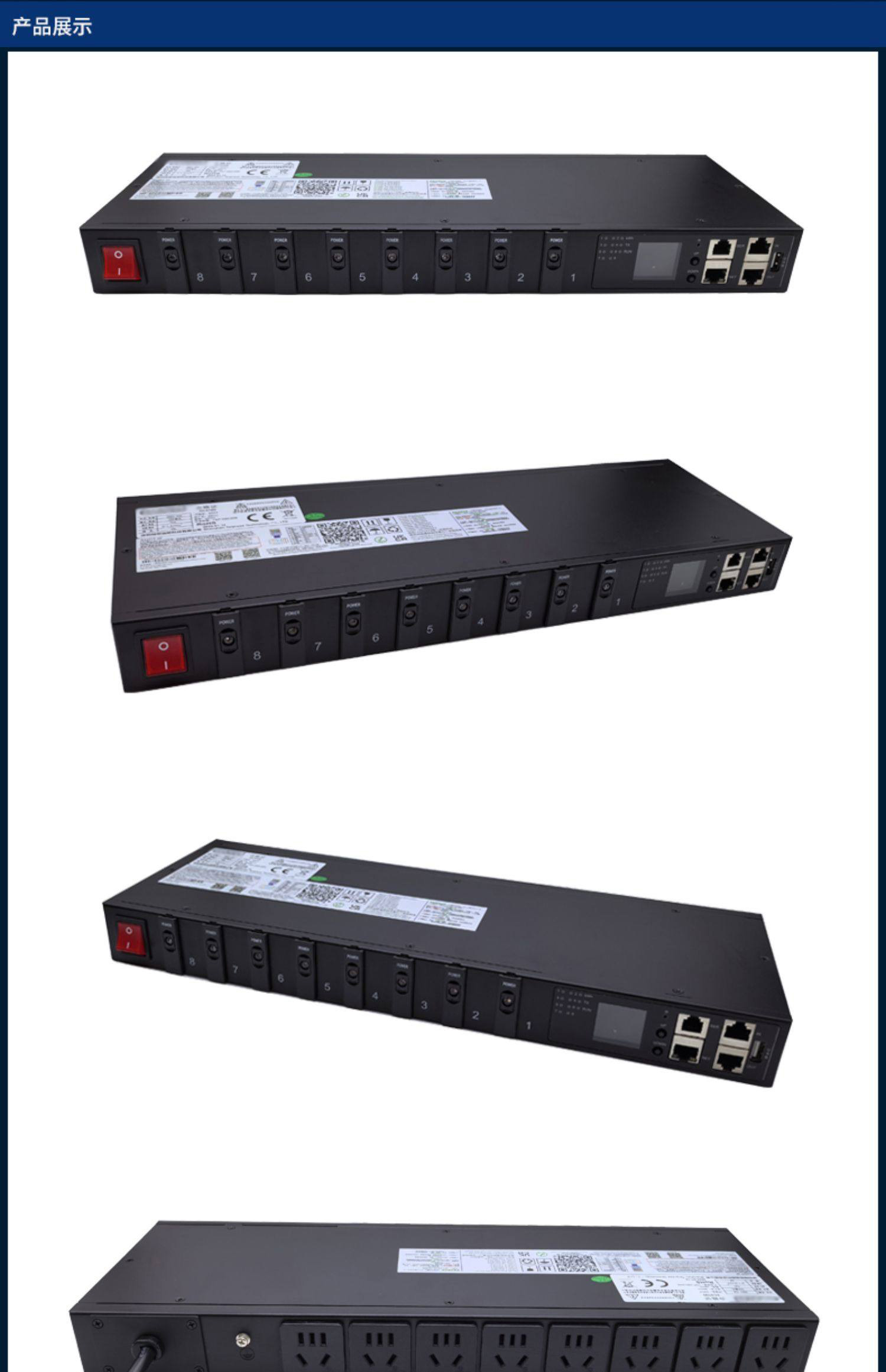 智能PDU插座8位10A 分路开关控制 热拔插指示灯19英寸485协议
