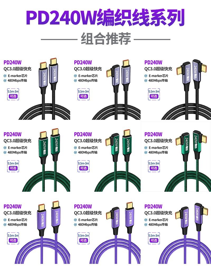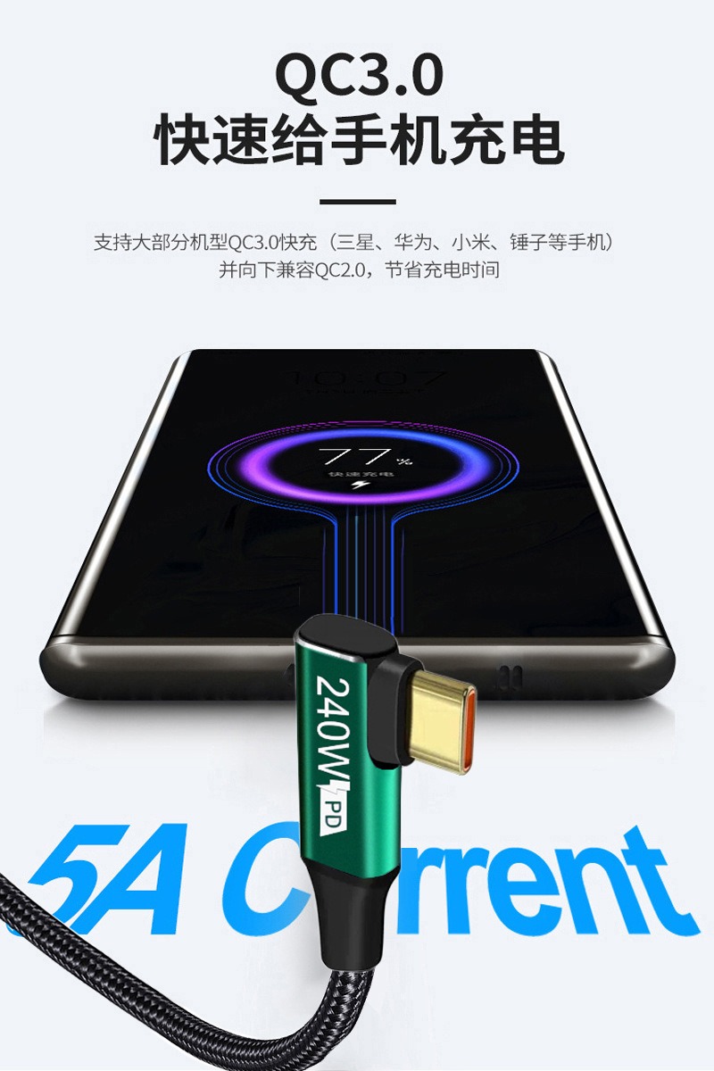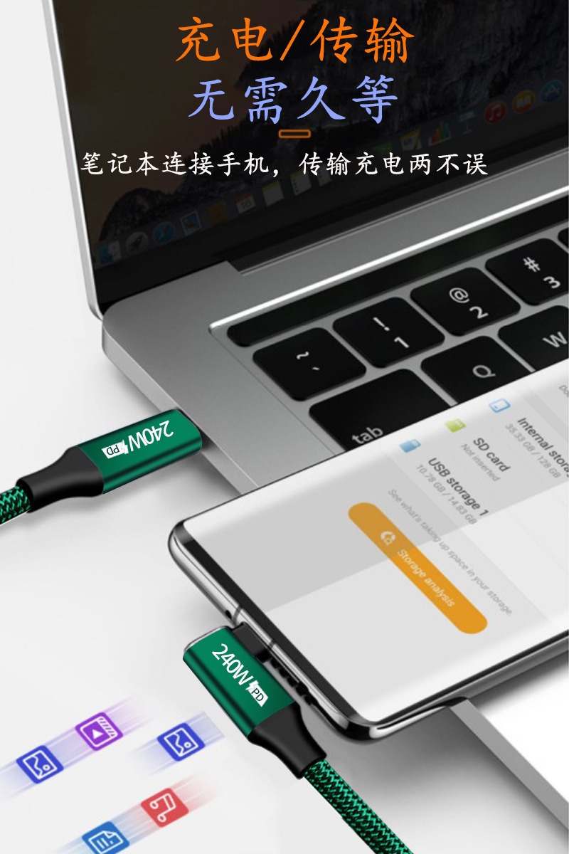 1、区别于普通 65W/100W 数据线,240W 满功率输出可快速充满大功率设备,比如游戏本、移动电源,告别长时间等待,出差、办公充电更高效。