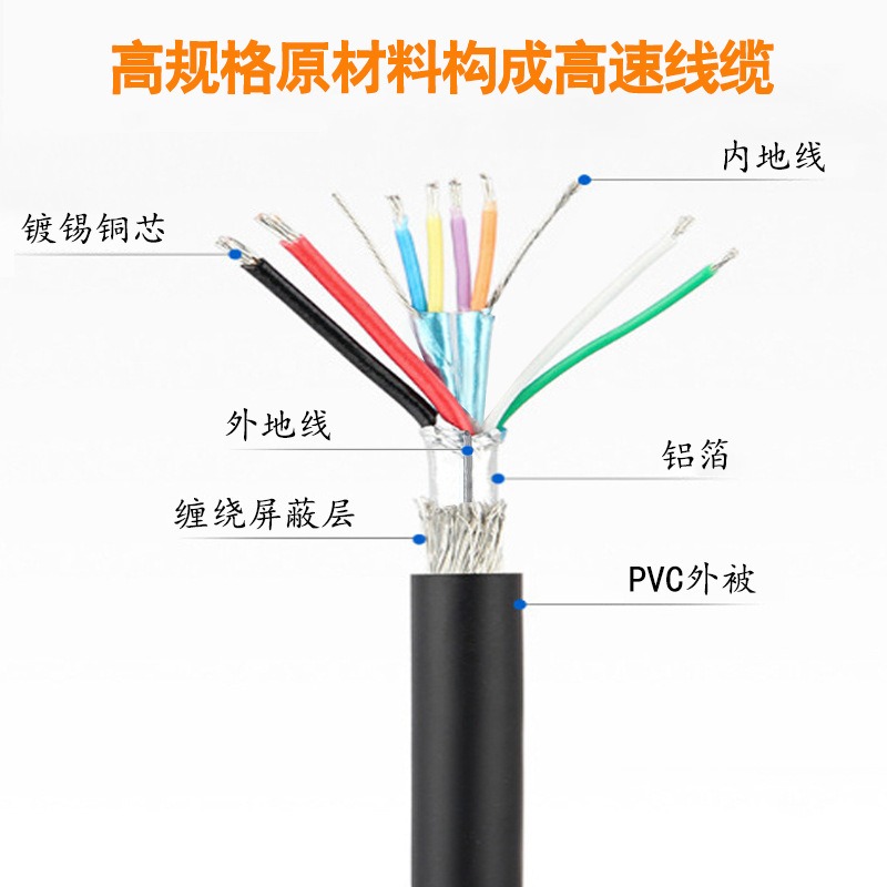 1.全双工数据传输,在USB3.0中,除4根主线外,另增加了两组线缆(每组都有一对信号线和地线,外围都有铝箔包裹屏蔽,互不干扰),一组用来发送数据,一组用来接受数据,也就是说USB3.0可以同步全速地进行读写操作,以前的USB版本是不支持全双工数据传输的。