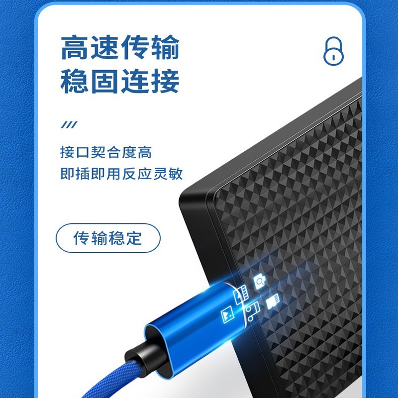 1、采用环保布纹编织外被,手感极佳,142根0.08国标铜线,电流可达到2.1A,极速充电,每条出厂前我们均半成品测试一次成品测试一次,保证将不良率降至微零,外观新颖,线材柔软、耐用、不易打结,手感细腻、有质感,铜线芯高速传输,充电传输稳定不间断。