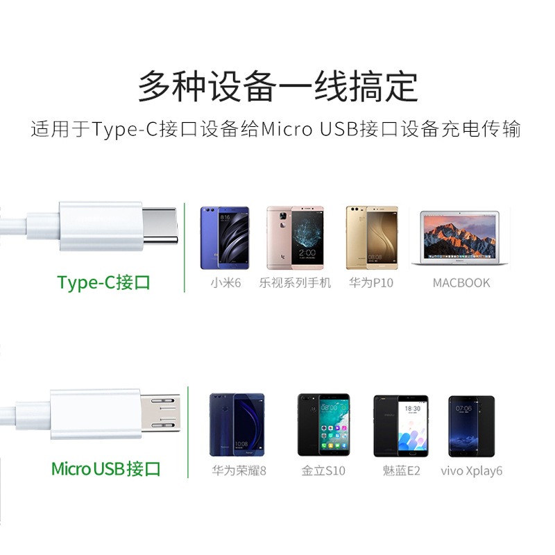 Type-C转Micro USB2.0(白色胶壳)数据线