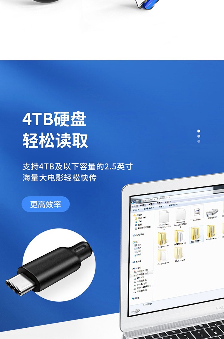 2.超快传输速度, USB3.0也被认为是SuperSpeedUSB,极大的提高了带宽,高达5Gbps全双工即625MB/S,但是实际传输速率大约是3.2Gbps,即400MB/S,USB2.0则为480Mbps半双工,即60MB/S。USB3.0可以在存储器件所限定的存储率下传输大量文件(如高清电影),例如一个采用USB3.0的闪存器可以在15秒钟将1GB的数据转移到一个主机,而USB2.0则需要43秒。