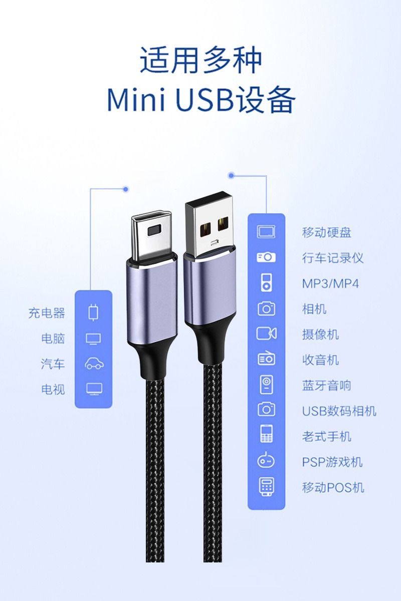 miniusb数据线t型口v3老式mp3充电器相机行车记录仪mp4老年机