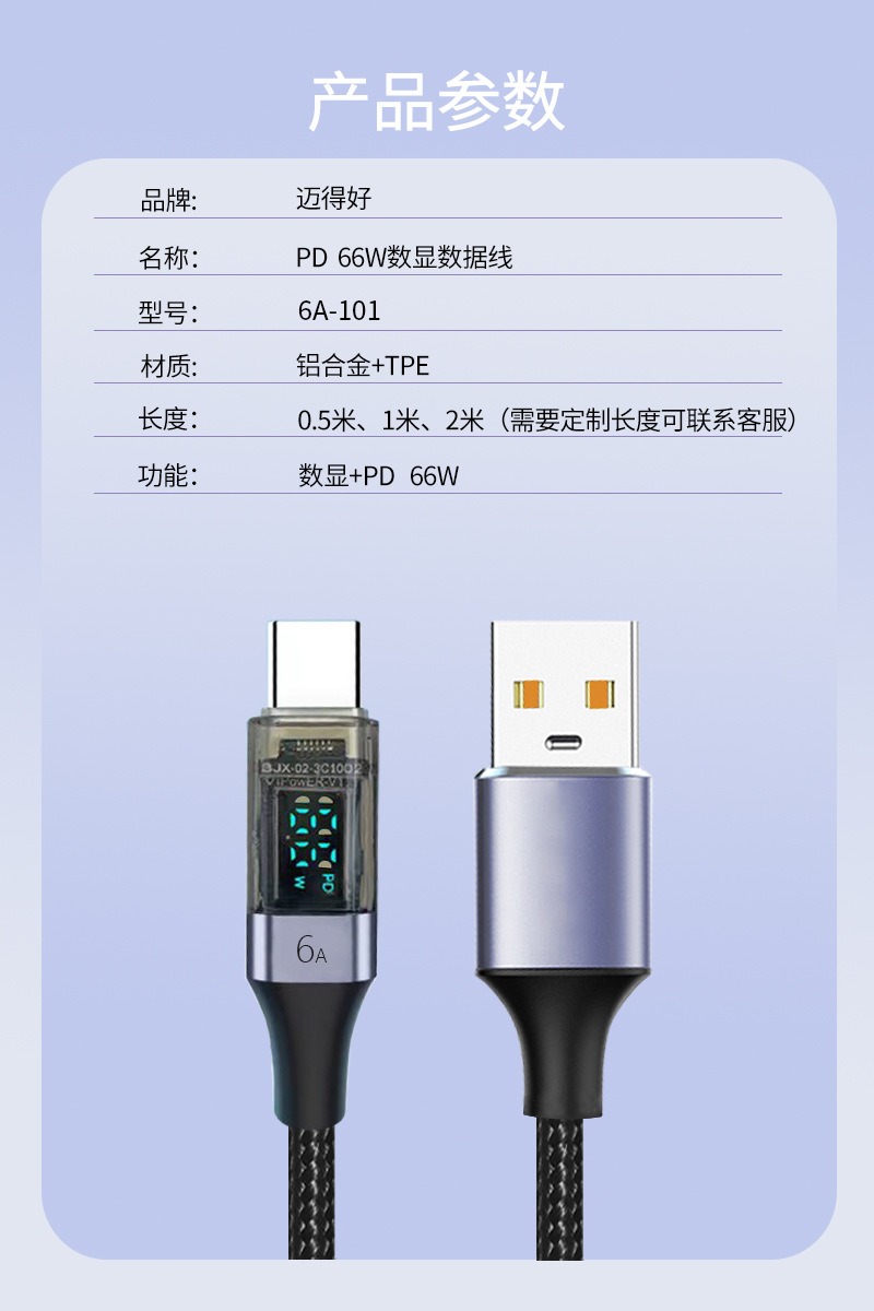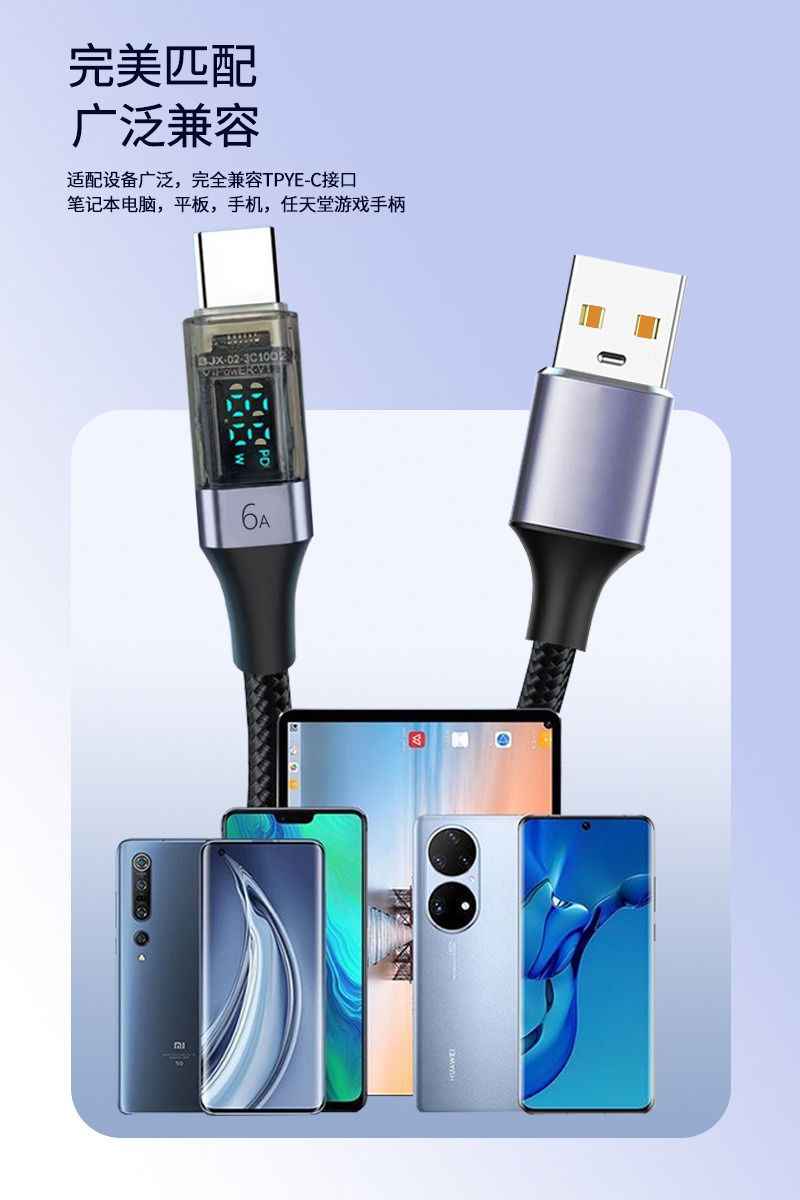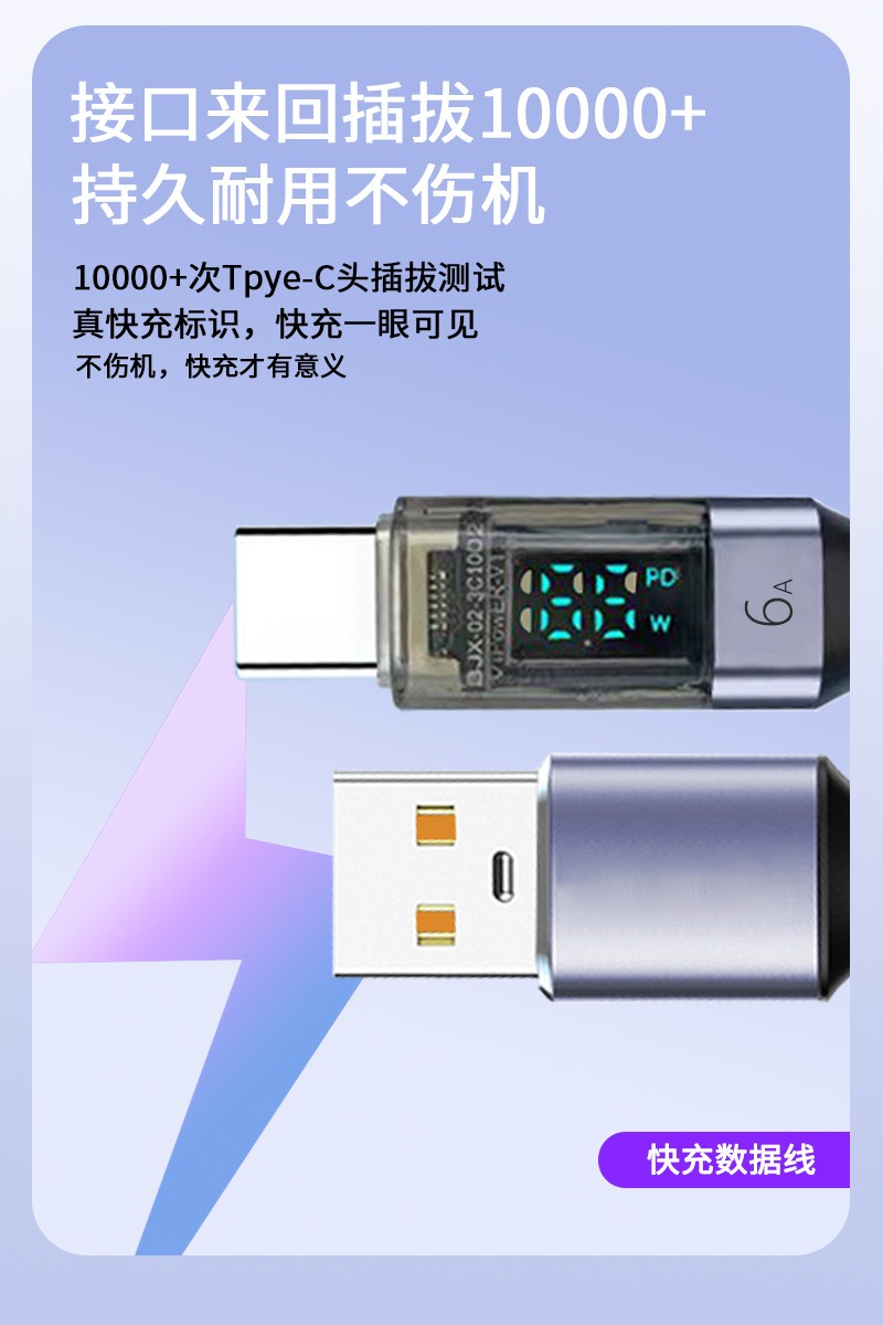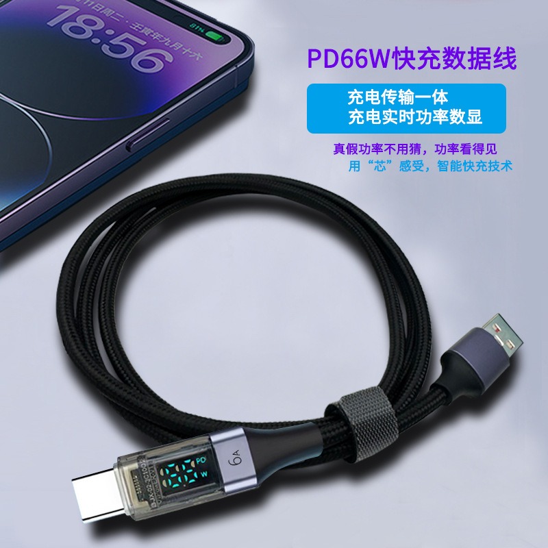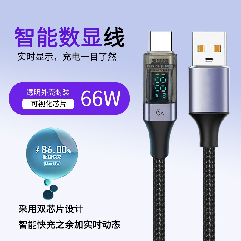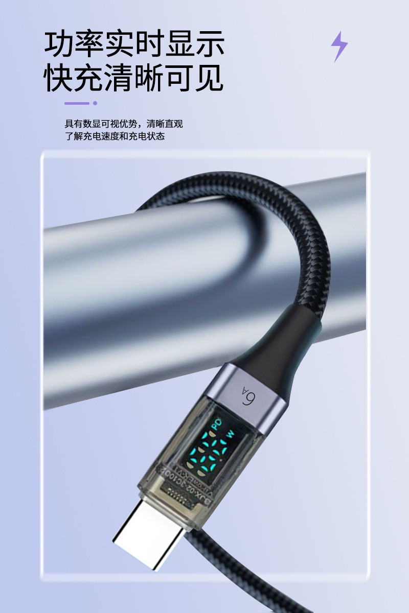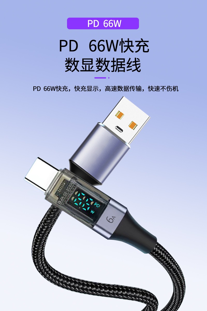 TYPE-C 6A智能数显快充数据线A对C口66W
