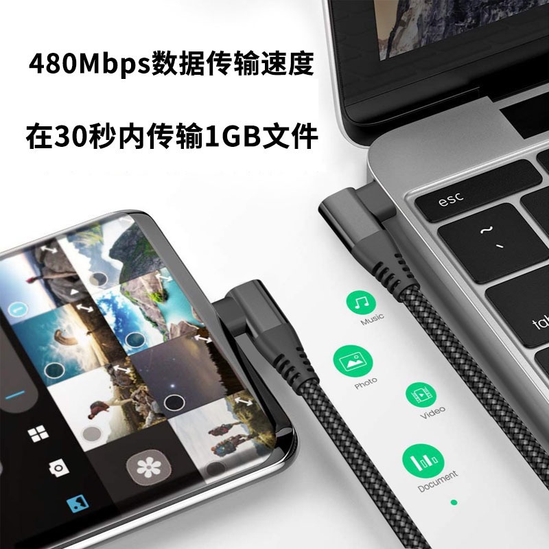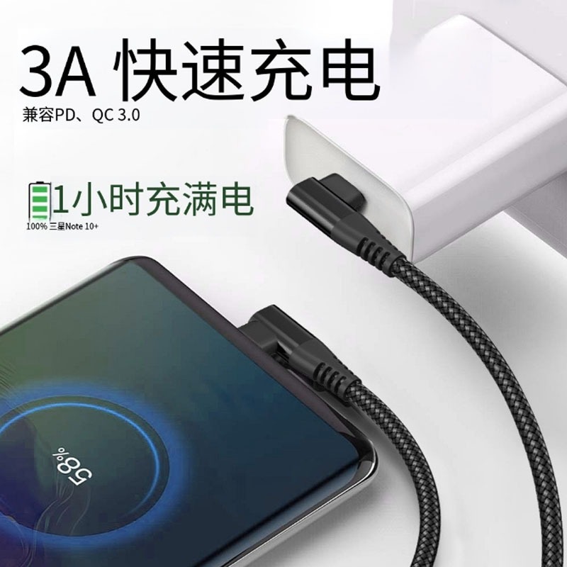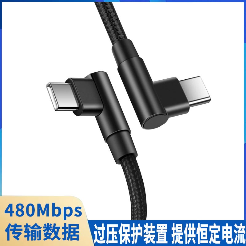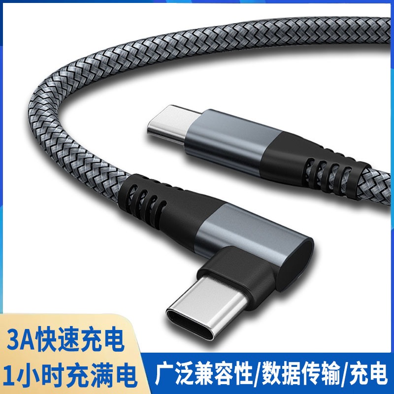 60W尼龙编织3A双弯头type-c数据线