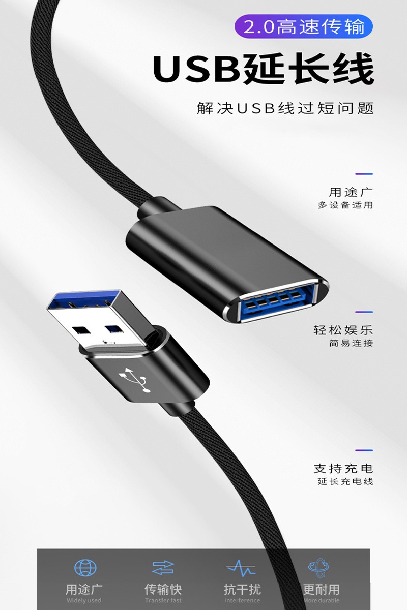 2、标准USB 2.0接口,USB数据线缆,可链接电脑进行数据传输同步。