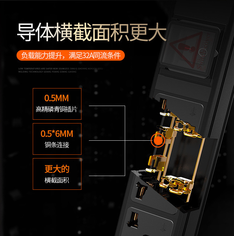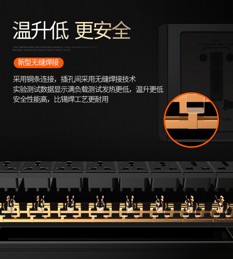 4、无缝焊接技术,实验数据显示,满负载测试发热更低,温升更低,安全性能高,比锡焊工艺更牢固