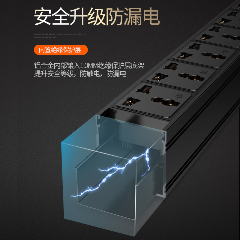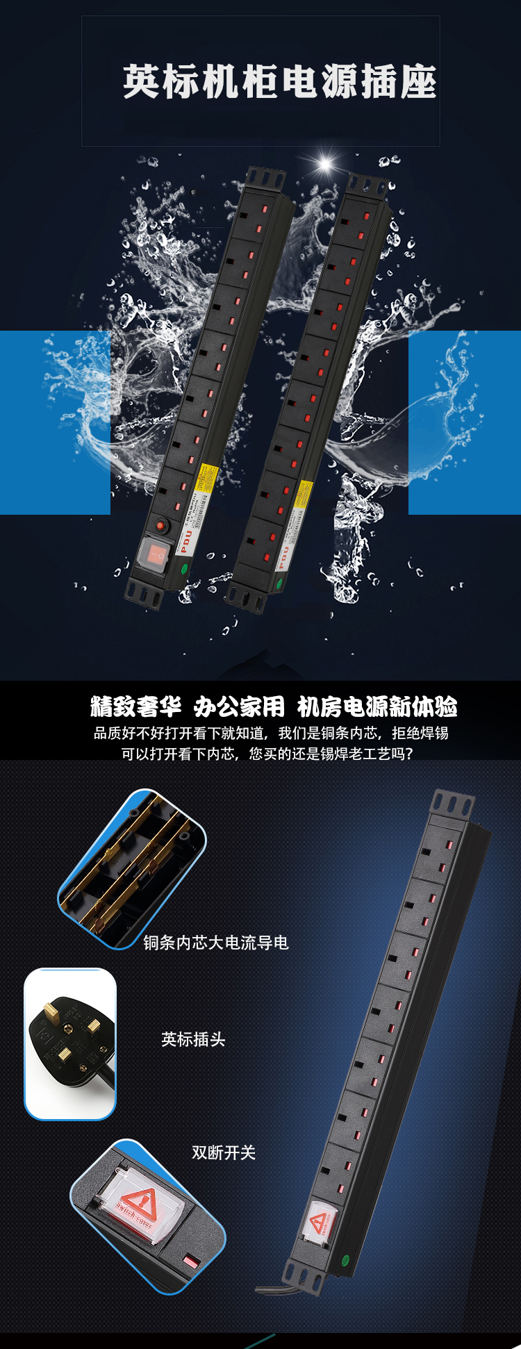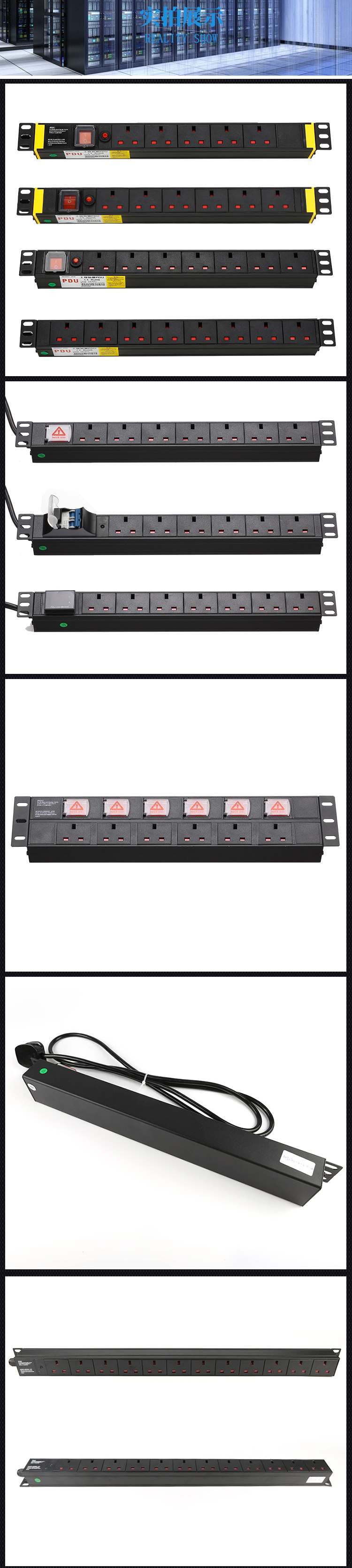 PDU机柜电源插座英规英标13A带双断开关铝合金7位排插接线板