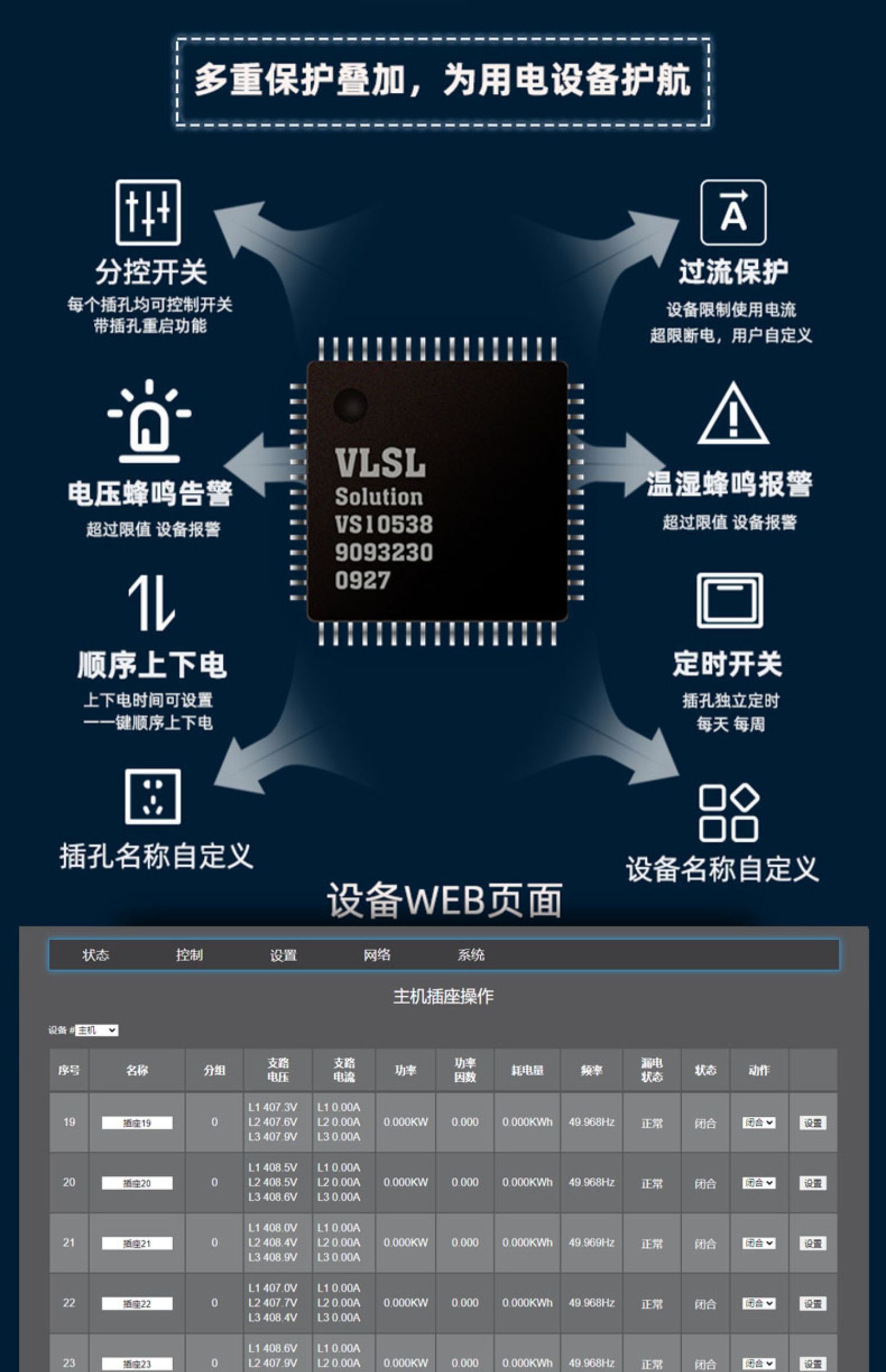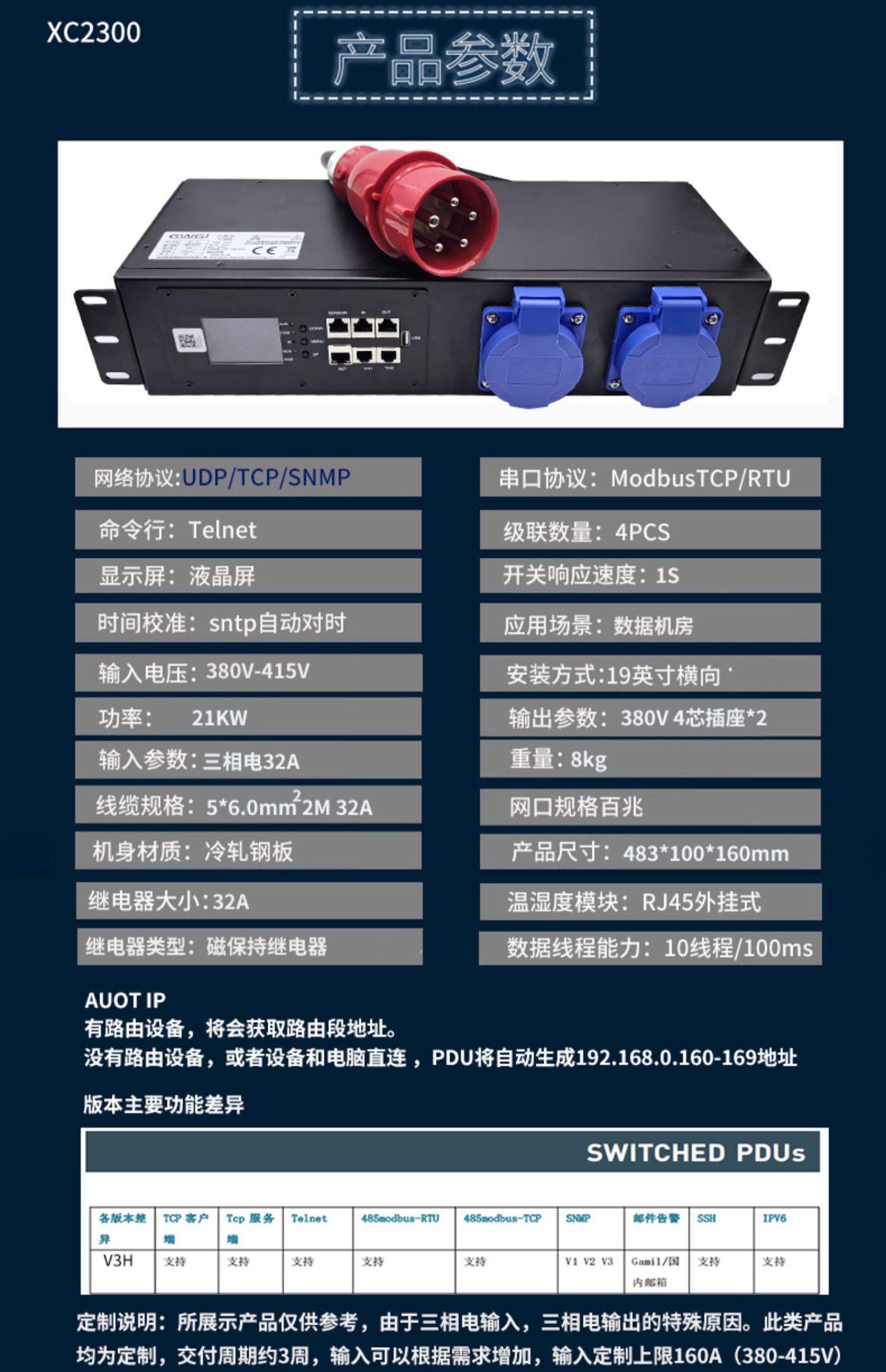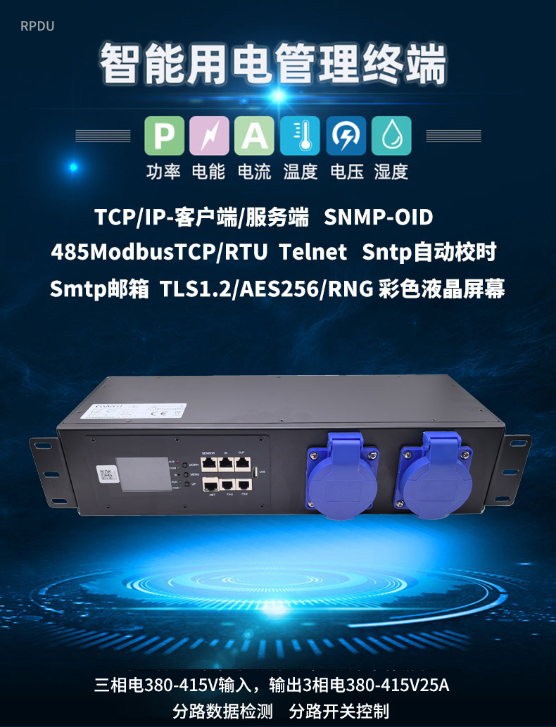 三相电输入 380V snmp modbus-TCP协议分监分控 智能PDU电源插座