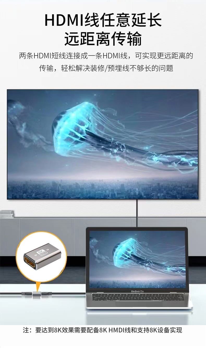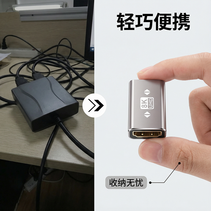 2、直接对接两根HDMI线,轻松解决线缆过短、预埋线不足问题,无需换长线;